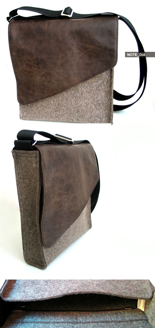 Umhängetasche aus 100% Wollfilz mit Lederklappe